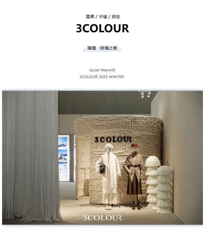 3COLOUR 2025 WINTER「暖蘊(yùn) · 絨境之息」,于冬境低語(yǔ),以輕柔韻律,傳遞靜謐的溫暖,織就一場(chǎng)無(wú)聲的暖意敘事。
