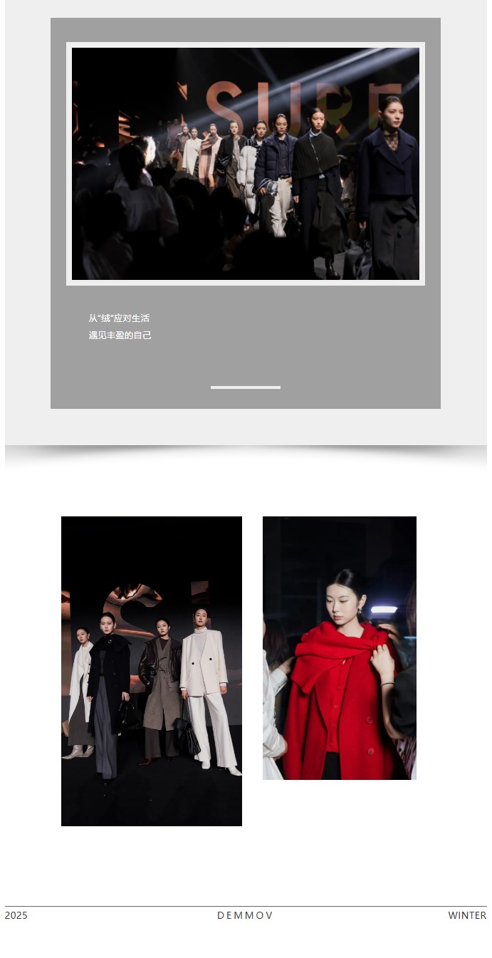 暖蘊(yùn)織就,絨境無(wú)聲。溯源時(shí)裝的本心,從纖絨到成衣,由觸感至心境,構(gòu)筑都市智識(shí)女性身心與外在的親密對(duì)話。